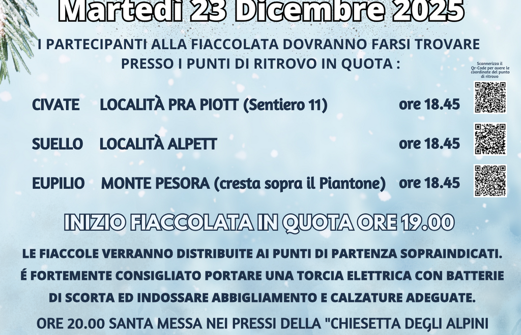 Anche quest’anno torna la magia della fiaccolata che illumina i sentieri del Cornizzolo, un momento unico di condivisione, tradizione e atmosfera natalizia.