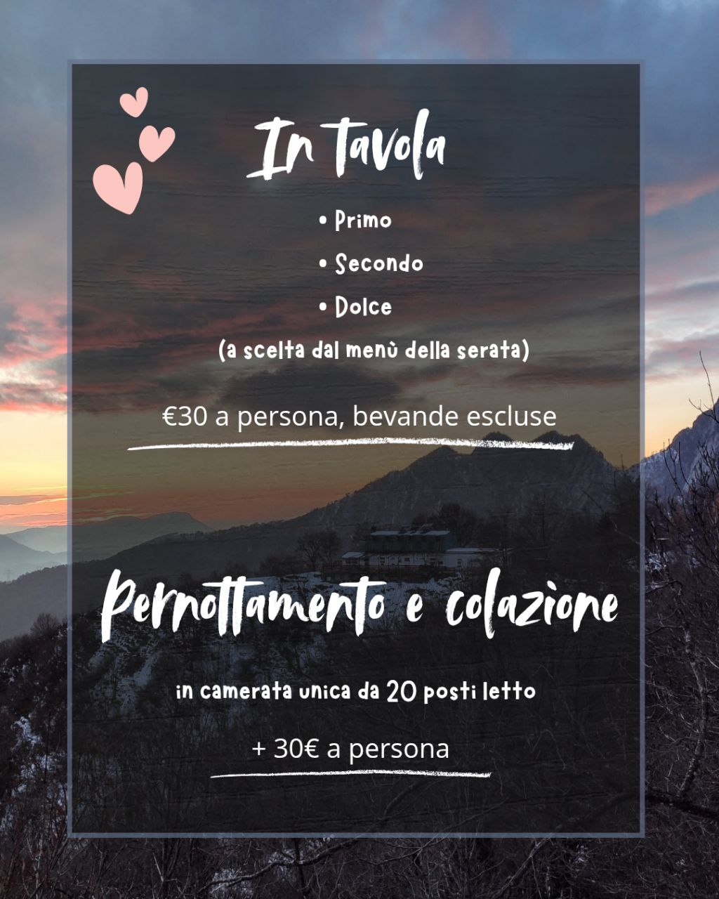 ❤️ SABATO 14 FEBBRAIO, ore 19:30, in occasione di San Valentino, proponiamo una cena a tema in Rifugio.